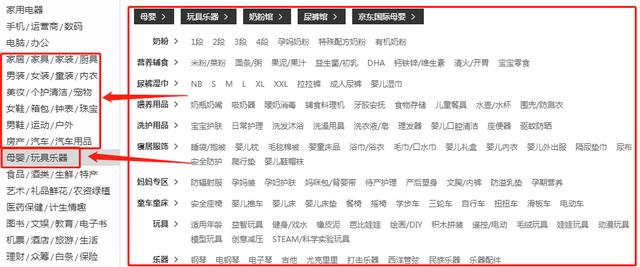 母婴、玩具这些是最直接的需求,现在大多数父母都会在孩子身上投入很多,这么多细分领域京东都已经明明白白的列出来了。