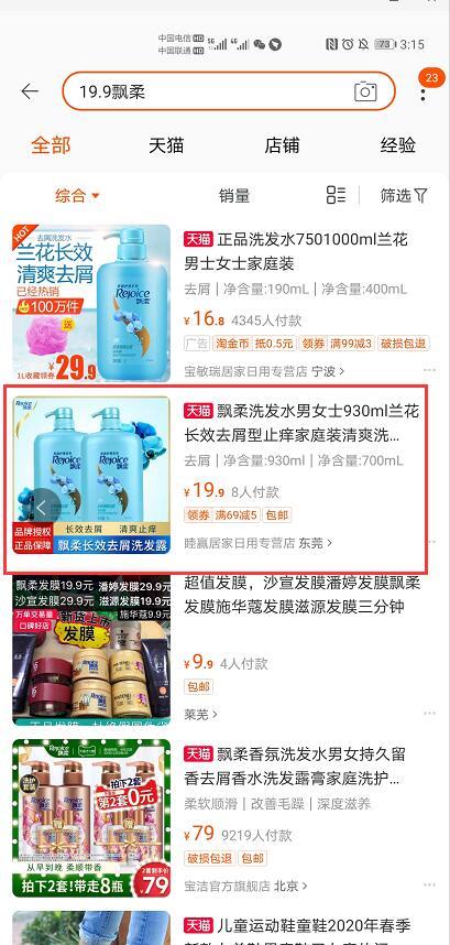 这样的原理是什么呢?首先,我们可以在淘宝上直接搜到出售单价为19.9的正品飘柔洗发水套装: