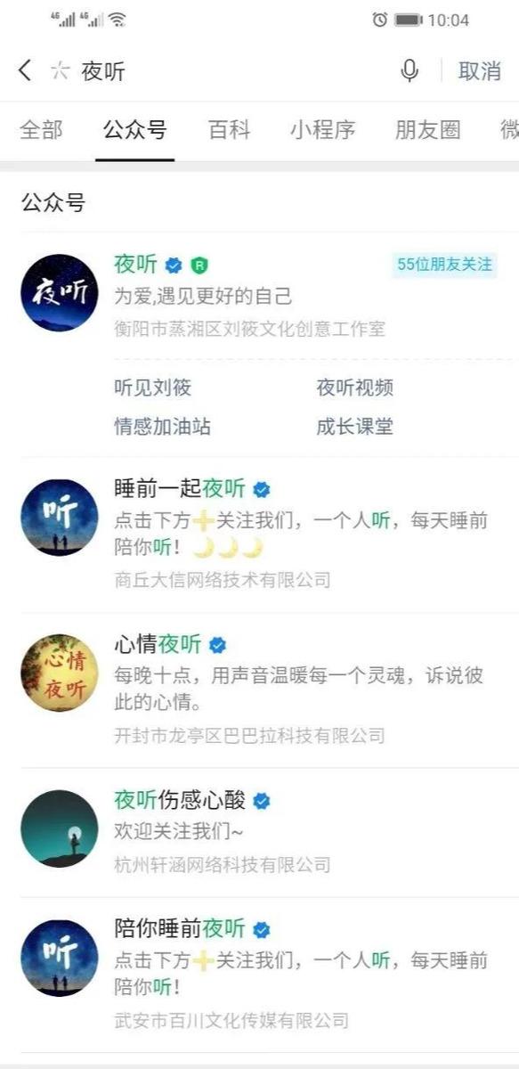夜听公众号,这个很火的公众号想必有和很多人都知道,每天微信搜索指数600万+,衍生出来的微信公众号多的很;