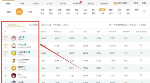 哈喽,大家好,今天给小伙伴们分享一个躺赚的暴利项目赚钱模式。不用任何推广,有人专门靠着这个方式有滋有润活着,更有甚者已经组建了公司专门开始做这件事情,那么我今天就来给大家分享一下,这个赚钱项目具体是怎么操作的。先来给大家看一个案例,我们找到搞笑公众号综合排行榜的数据。