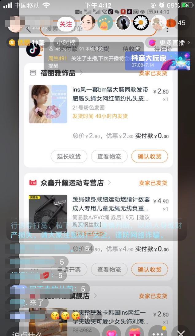 6、直播间里只要假装透出自己购物的优惠信息,也就是交易截图,再引导观众加入群聊就可以了;