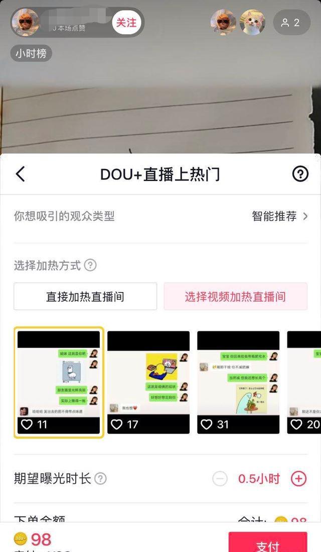 另一种直播间投放DOU+的方式就是直接加入直播间,这个直接同步直播间内的画面,当用户看到看到直播推荐时,点击除顶部导航外任意位置即可进入直播间。