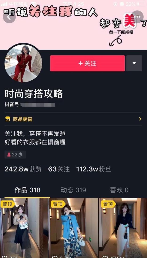 - 简介为「关注我,穿搭不再发愁 好看的衣服都在橱窗喔」,引导用户点击关注,告诉用户在这里能得到什么,有什么好处;
