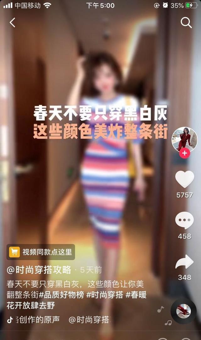 - 基本上所有视频都是以女生的穿搭攻略为主,视频都是博主真人出镜,视频一开始从模糊到清晰,边走边展示衣服,制造消费场景,激发出购物欲望;
