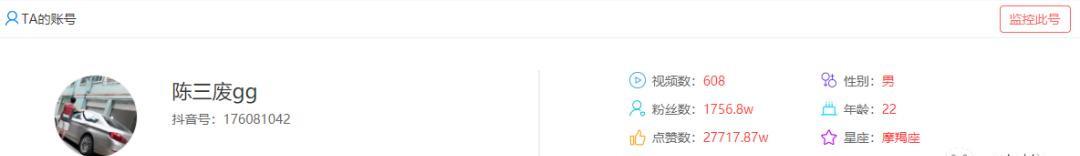 抖音搞笑达人「陈三废gg」是全五分带货(公众号)的周直播排行榜第3名,姐姐「陳婷mm」为第10名;