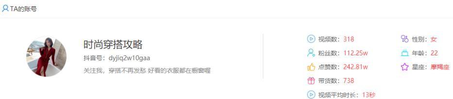 抖音穿搭达人「时尚穿搭攻略」是全五分带货(公众号)的周直播排行榜第4名,在上周的周直播榜中排行第7名,抖音穿搭排行榜日榜第 82 名;