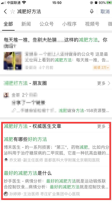再举个例子,比如我们在微信搜索【减肥好方法】