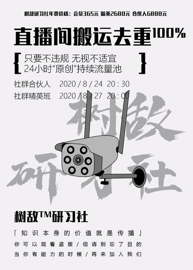 树敌研习社0824抖音直播技术:直播间100%搬运去重,24小时推原创流量池