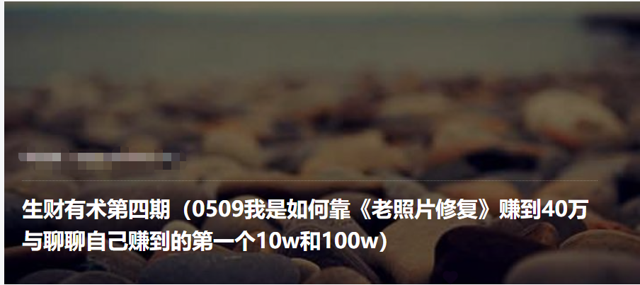 生财有术第四期(0509我是如何靠《老照片修复》赚到40万与聊聊自己赚到的第一个10w和100w)