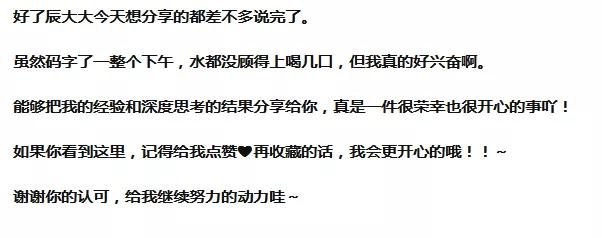 这两种方式很好,非常适合做干货文的结尾,因为你在用心的帮别人解决问题,大家在认可你的答案同时也会认可你这个作者。但这种方式不一定适合所有的问题答案,这时候就可以用其他的方式来结尾。