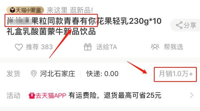 通过上图我们可以看出,一件某明星同款的饮料,月销量有1w+。