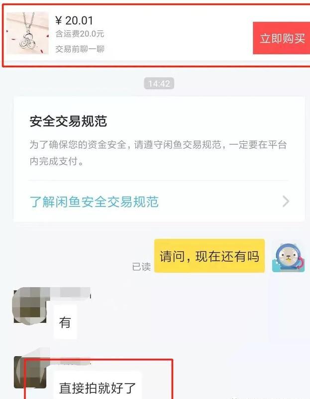 比如大家可以看下上面这件商品,原价是199元,现在卖家定价只要0.01元,据说是男朋友送的,很多人被图片和价格吸引过来,128人想要。,浏览量870次,留言区很多人留言,我也顺势点了下想要,结果就跳转至下面的界面,最上面有个立即购买,显示要付运费20元,我问他现在还有货吗?他说你直接拍就好。