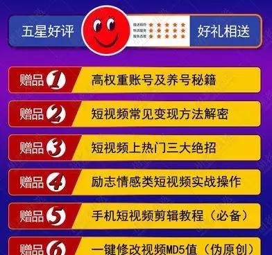 除了种类丰富的视频素材之外,只要给5星好评,这个店家还赠送6大福利。不仅有养号秘籍、实操指南,还有可以把视频变为的原创的“一键修改 MD5值工具”