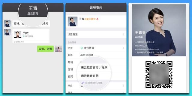 ④关于成交:成交有两个关键点,1是信任,2是便捷性。在对外服务中,客户的通讯录、会话、详细资料、二维码等页面均可显示该员工的企业身份,杜绝了传统微营销里的“收款拉黑”现象。且企业微信提供小程序收发与群直播功能,每种工具都可达到信任建立,精准客户宣讲、便捷成交的目的。