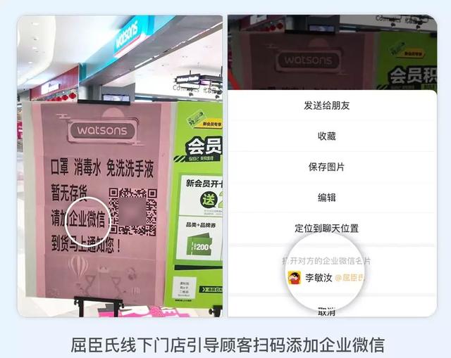 ▌屈臣氏:线下店摆二维码水牌导流,目前企业微信客户200万+,通过客户朋友圈、群直播、小程序等,建立从服务到成交的闭环。一个成熟的成交场景是:导购在企业微信发朋友圈,成交后最快1小时闪电送达。