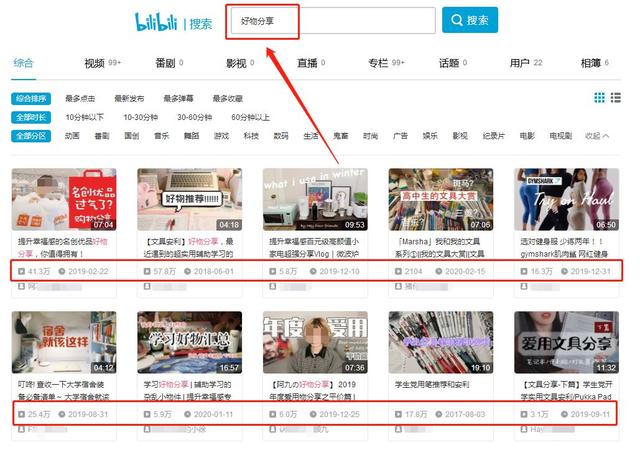 从上图可以看出一个好物分享视频的播放量基本都在几万、几十万这种水平。