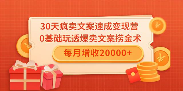 30天疯卖文案速成变现营,0基础玩透爆卖文案捞金术!每月增收20000+